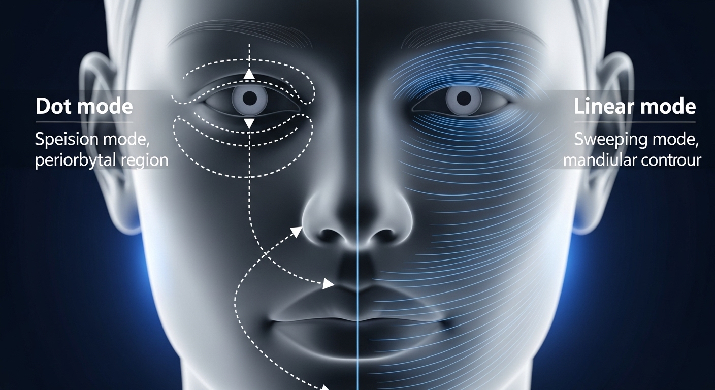 - 점형(Dot) 모드: 섬세하고 정교한 리프팅이 필요한 눈가, 입가 등 좁은 부위나 깊은 주름 개선에 탁월하죠.